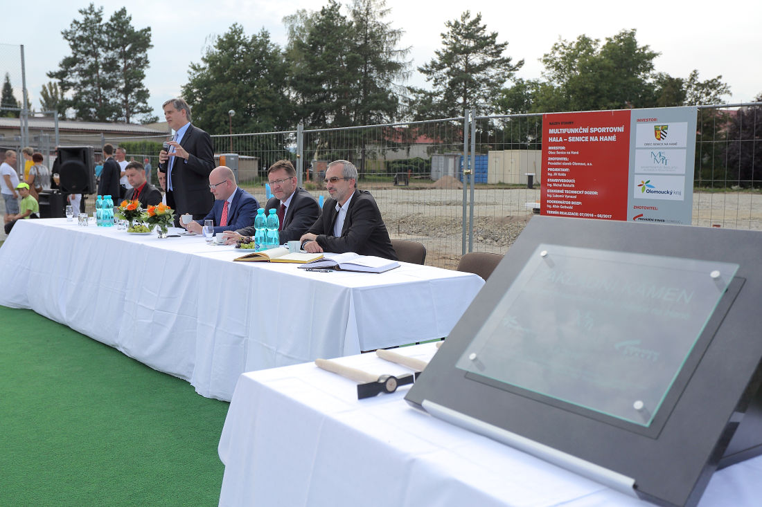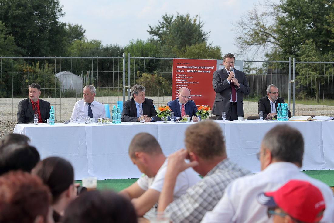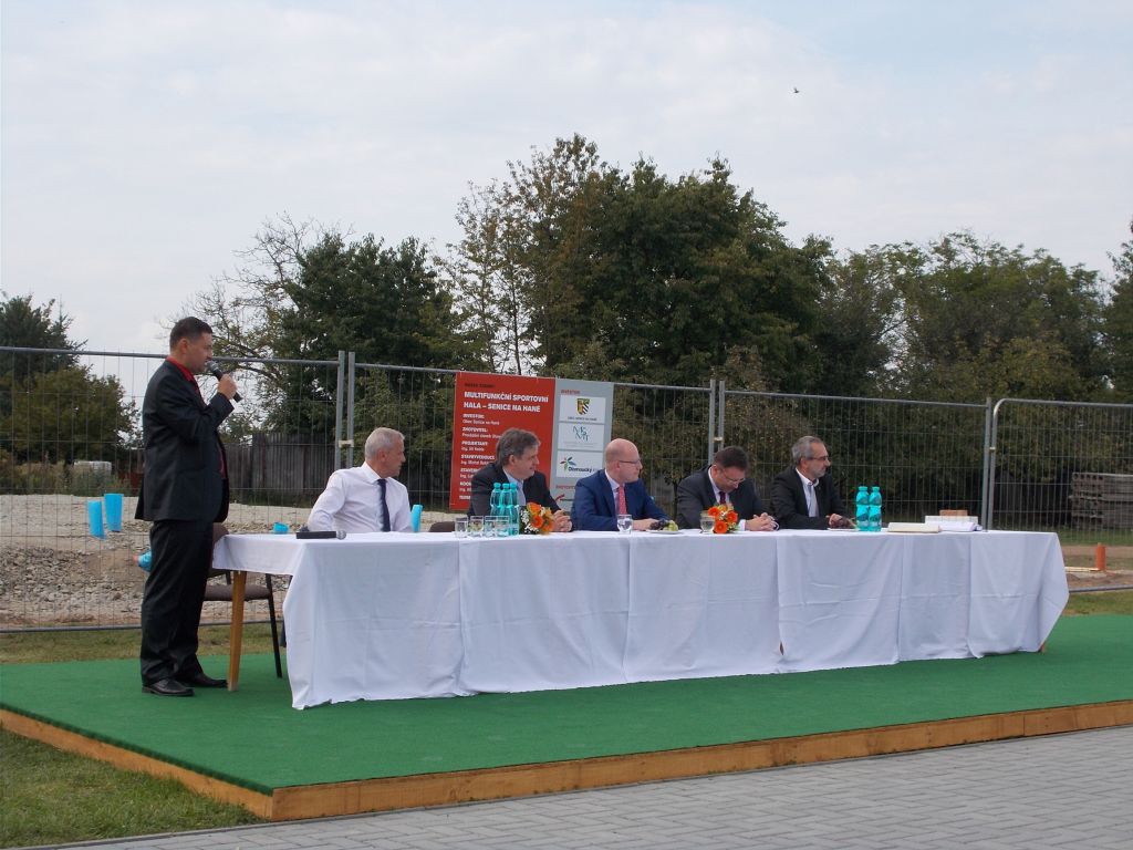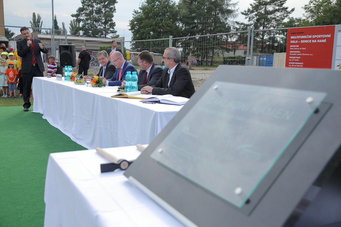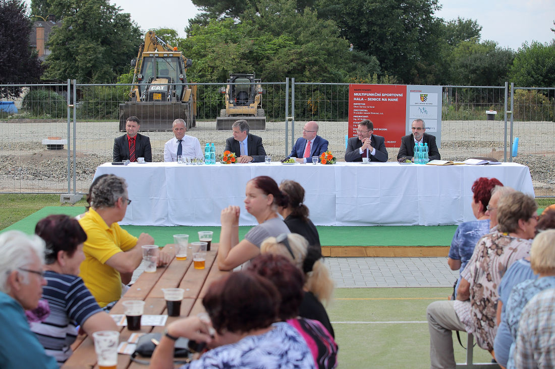 Oficiální zahájení výstavby multifunkční sportovní haly v areálu základní školy v Senici na Hané dne 3. září 2016. Slavnostního aktu poklepání základního kamene byl přítomen premiér p. Bohuslav sobotka a ministr p. Jiří Dienstbier
