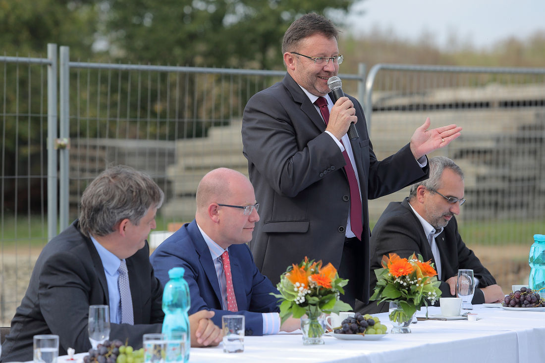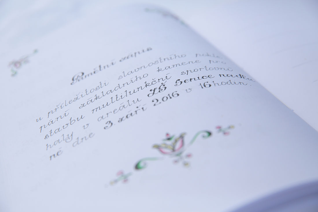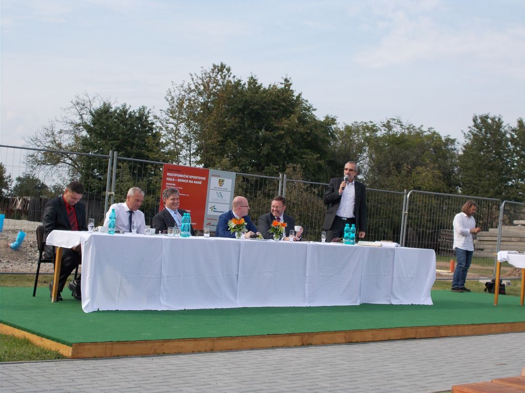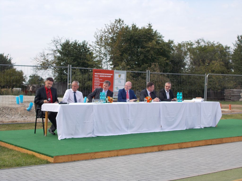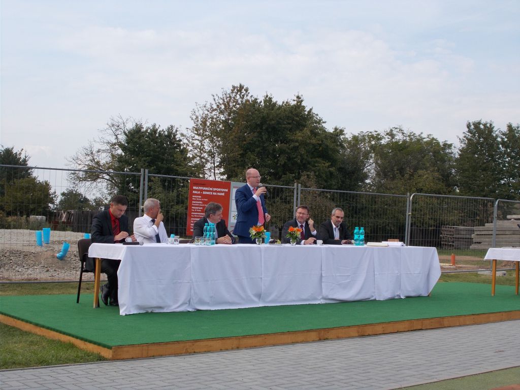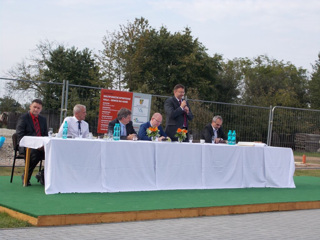 Oficiální zahájení výstavby multifunkční sportovní haly v areálu základní školy v Senici na Hané dne 3. září 2016. Slavnostního aktu poklepání základního kamene byl přítomen premiér p. Bohuslav sobotka a ministr p. Jiří Dienstbier