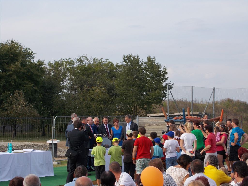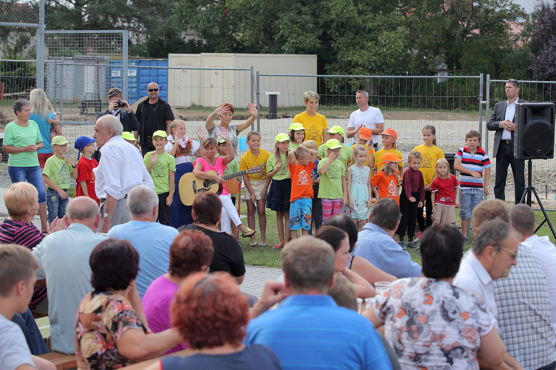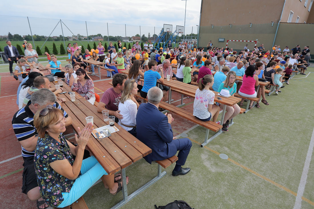Oficiální zahájení výstavby multifunkční sportovní haly v areálu základní školy v Senici na Hané dne 3. září 2016. Slavnostního aktu poklepání základního kamene byl přítomen premiér p. Bohuslav Sobotka a ministr p. Jiří Dienstbier
